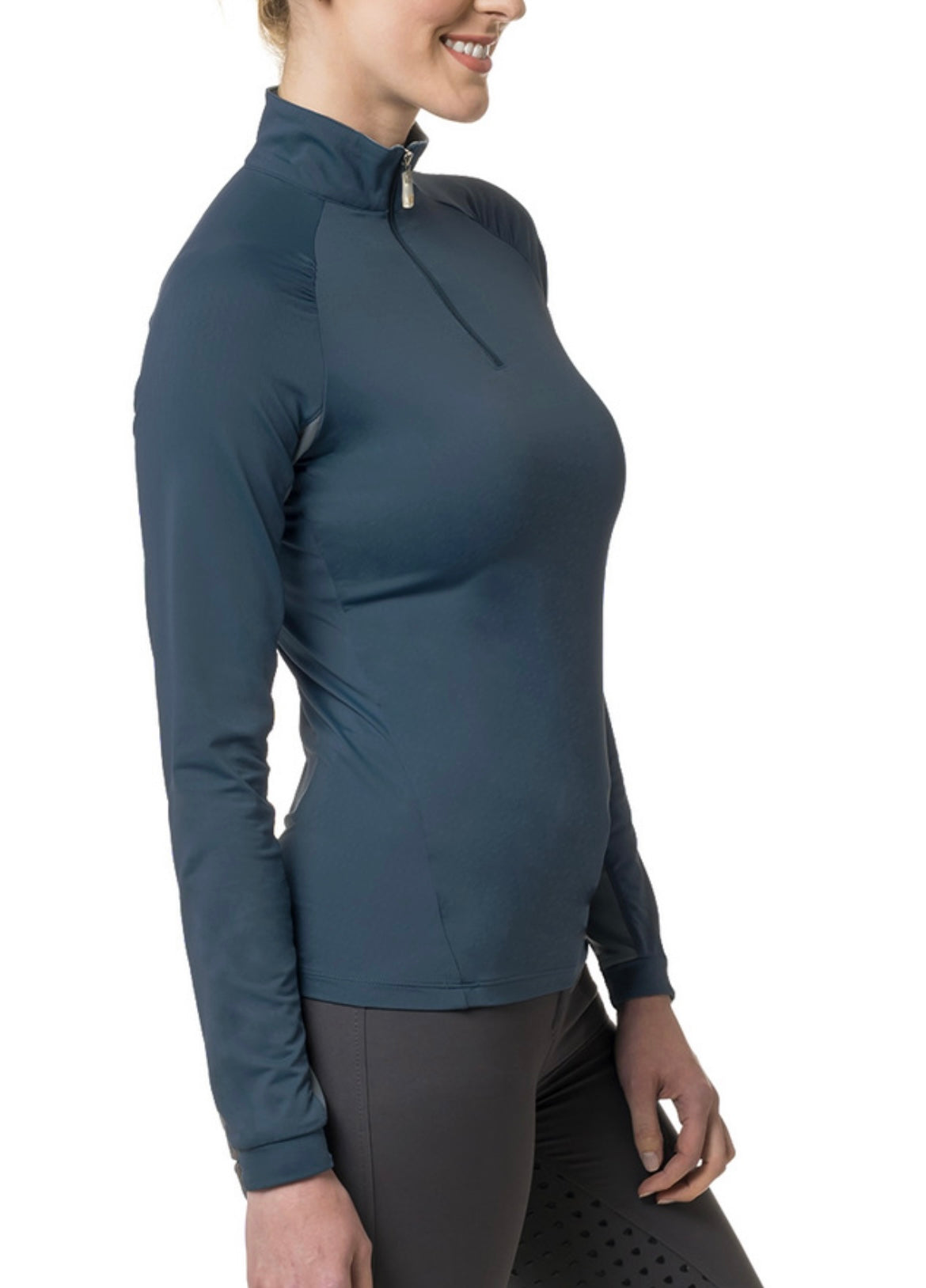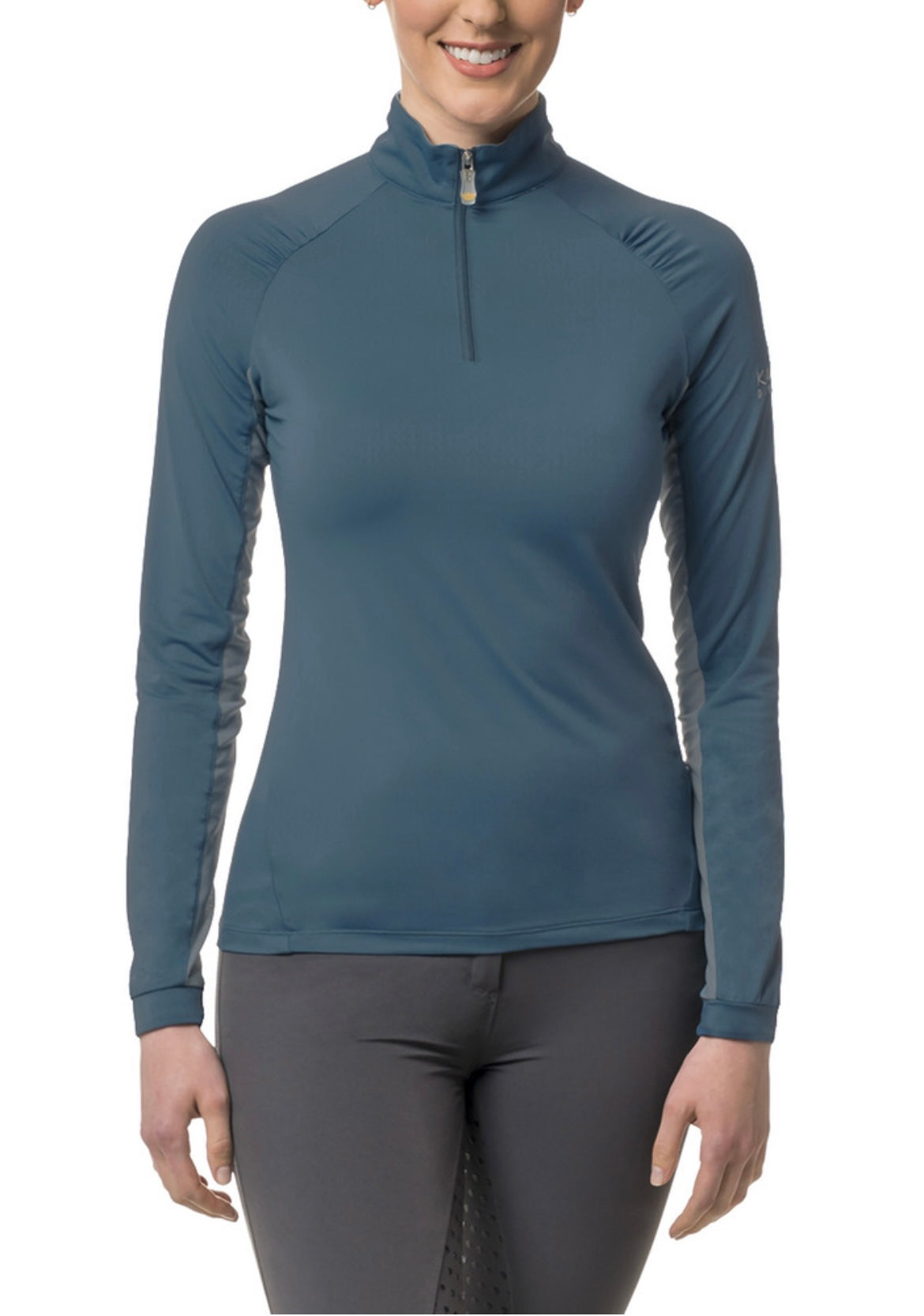 Modern and sleek, with slight shirring detail at the raglan seam updates our crowd favorite in rich teal. UPF 30 sun protection, 1/4 zip, made with quick dry, soft 4-way stretch fabric. Fitted, flattering worn out or tucked in.