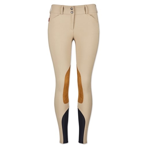 The Tailored Sportsman Hunter Jumper Boot Sock Breech is an addition to the Tailored Sportsman line that you know and love now with comfortable sock bottom. Beautiful styling meets a modern fit for a breech that will win blue ribbons in the hunter ring. Made from a high-quality, four-way stretch material, these breeches will move with you and are made to last. They feature a 2” wide waistband to eliminate gapping and a redesigned inner waist that prevents clasps from touching your body. Euro seat styling for a flattering look. Plus, they have a low rise and front zip closure for balance of modern and traditional. Additionally, Clarino™ knee patches give you just the right amount of grip and two front pockets give you handy storage.