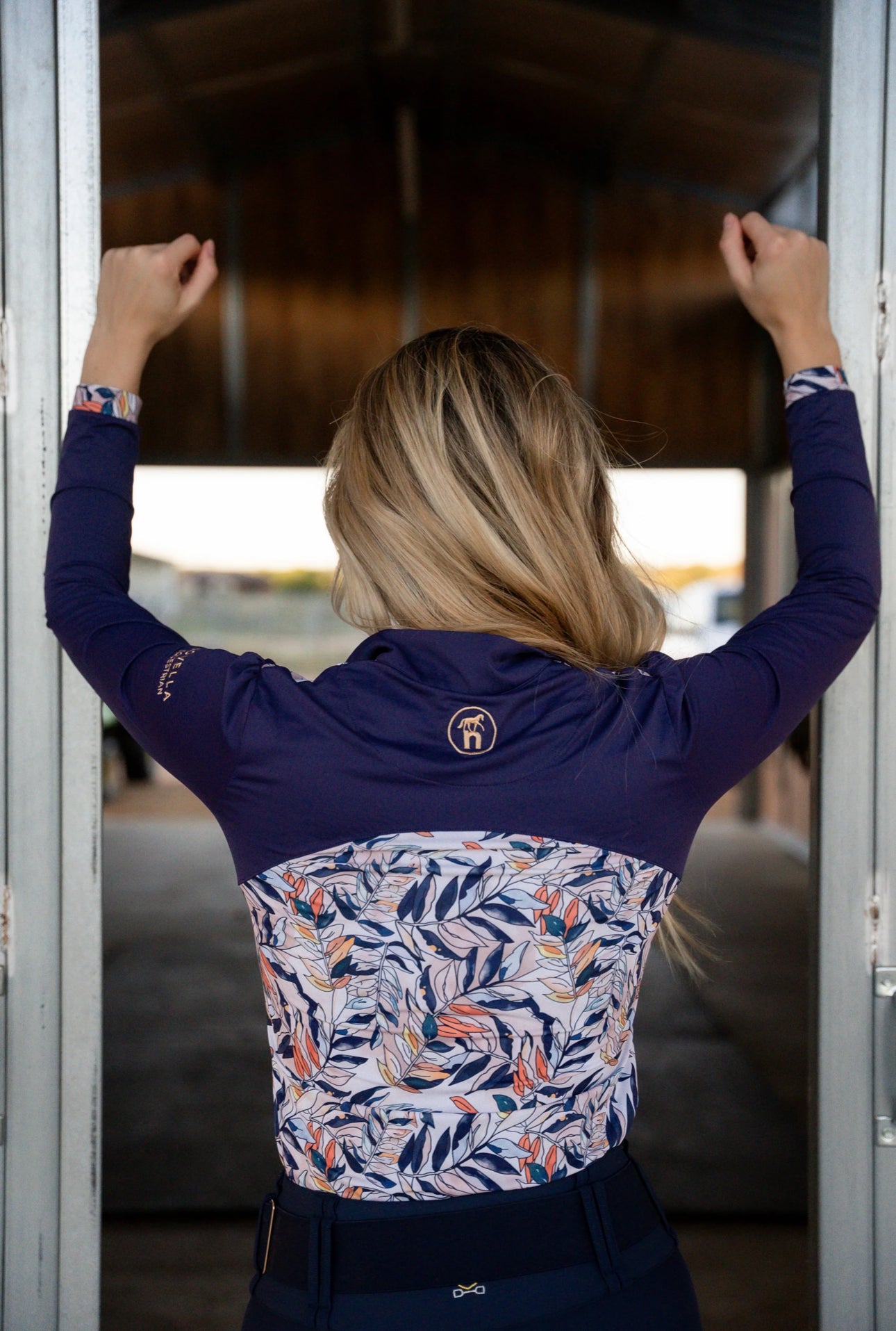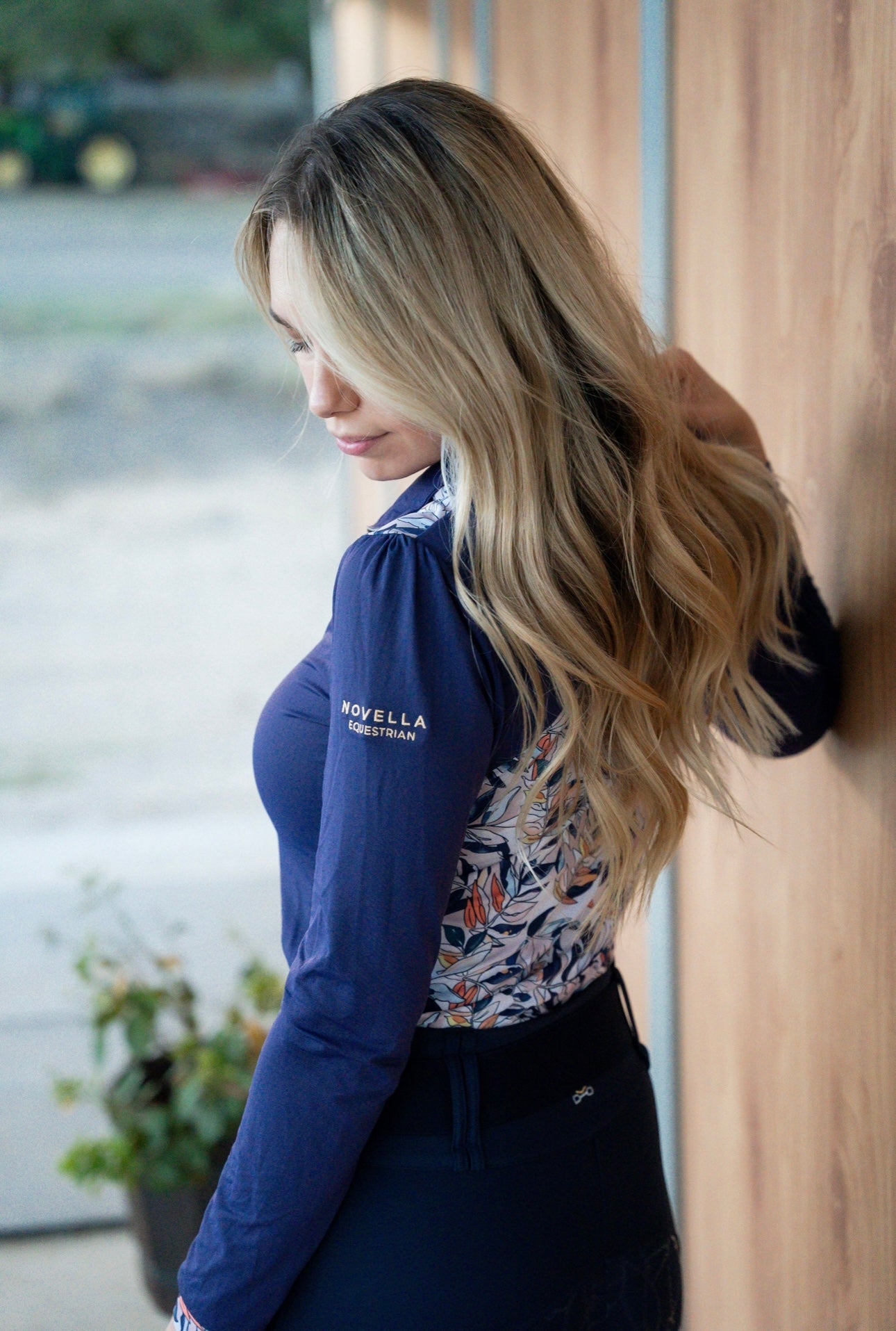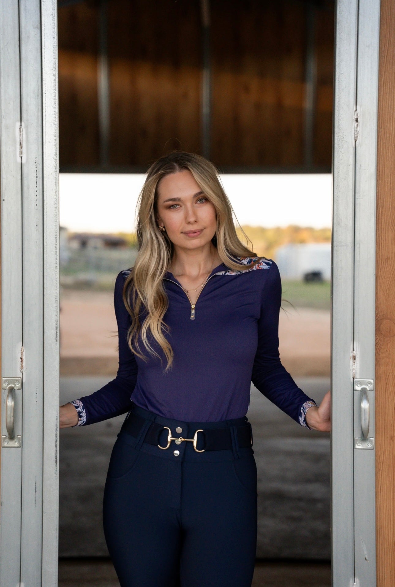 This design features an adorable, subtle puff-sleeve in a gorgeous blueish-purple hue. The elegant watercolor pattern pops on your shoulder, wrist and back - highlighting your equitation and your figure. True to size but adapts to your body’s changes - this sun-shirt gives you a perfect fit every time. UPF 30+ for added ultra-violet protection.